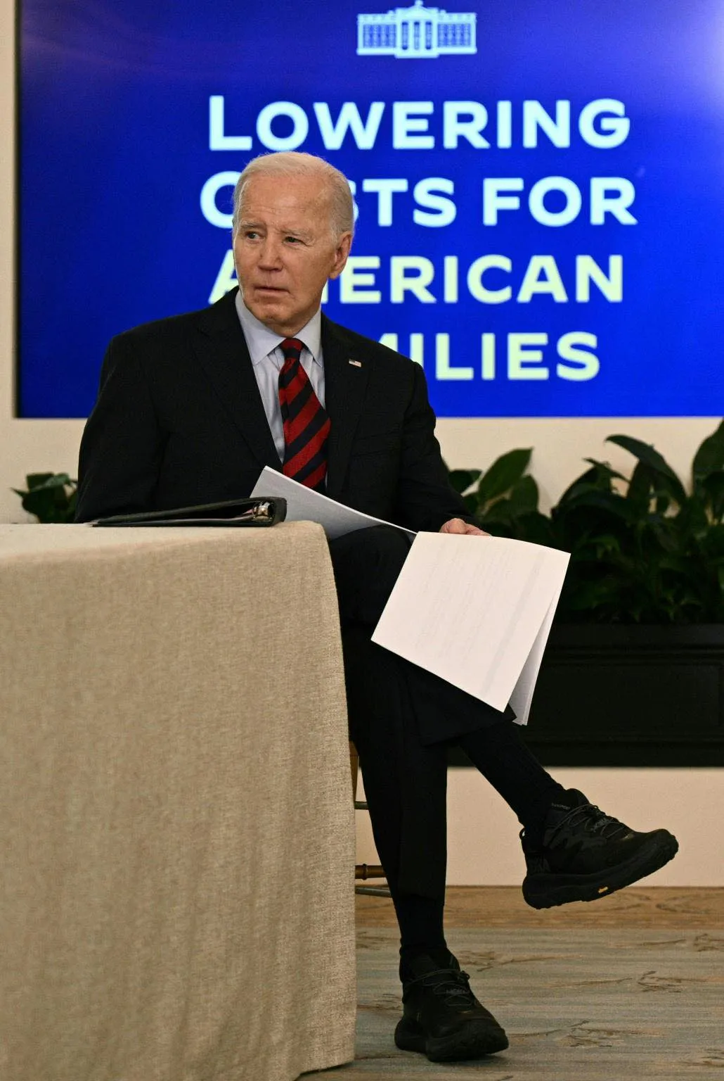 Les nouvelles chaussures du leader américain Joe Biden ont été révélées, alimentant les rumeurs selon lesquelles le président sortant de 81 ans aurait besoin de plus de stabilité après une série de chutes et de trébuchements.