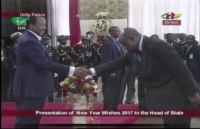 La cérémonie de présentation des vœux de nouvel an au chef de l’Etat Camerounais Paul Biya était sans doute la plus attendue en cette date du 06 janvier 2017. Pour cause, les invités attendaient avec impatience le passage du Ministre des sports Pierre Ismael Bidoung Mpkatt.