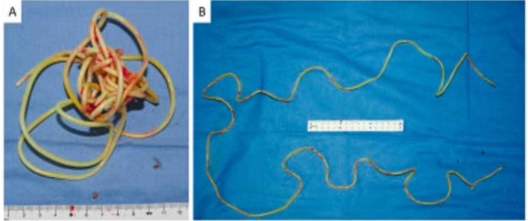 Les scans publiés par ses médecins montrent la corde étroitement enroulée à l’intérieur de la vessie de l’homme non identifié. Les médecins ont dû couper la vessie de l’homme pour l’extraire chirurgicalement et ils n’ont pas pu la retirer comme elle est entrée.