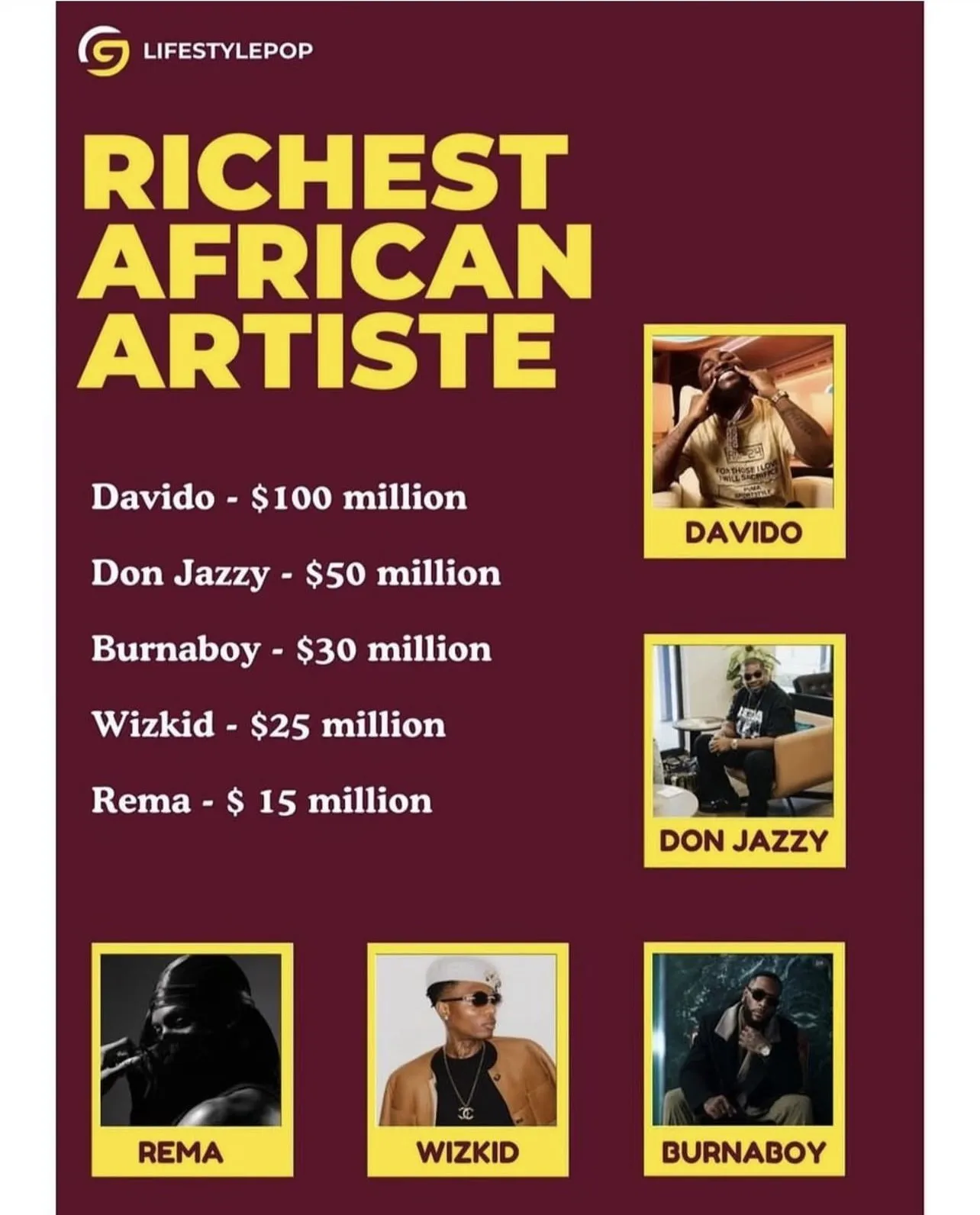 Avec une fortune qui serait estimée à 100 millions de dollars, Davido se hisserait au sommet du classement des artistes africains les plus fortunés.