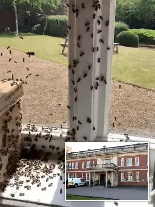 Le quartier général de Wootton Hall de la police du Northamptonshire en Angleterre a subi une infestation d’abeilles, un incident qui a forcé les agents de sécurité à évacuer.