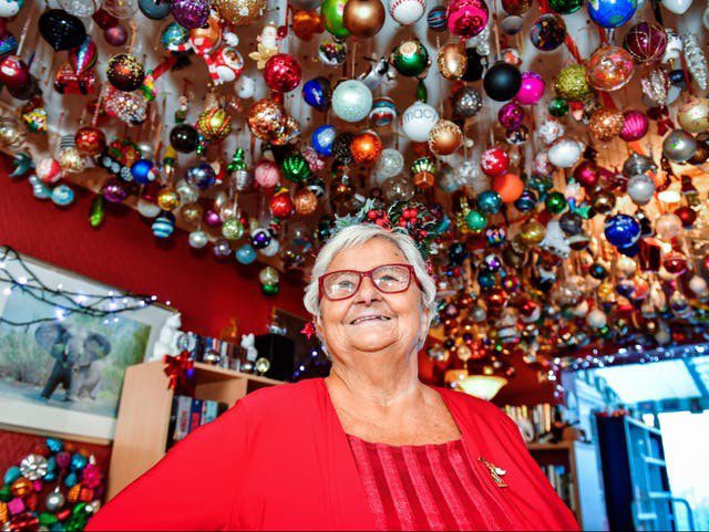 Sylvia Pope, 79 ans, originaire de Swansea, a été surnommée « Nana Baubles » en raison de sa collection, qui comprend 1 760 boules au total. La collection est répartie dans toute sa maison, avec des boules suspendues à diverses parties de sa maison, y compris son plafond. Les boules viennent du monde entier et sont très variées en termes de couleur et de style.