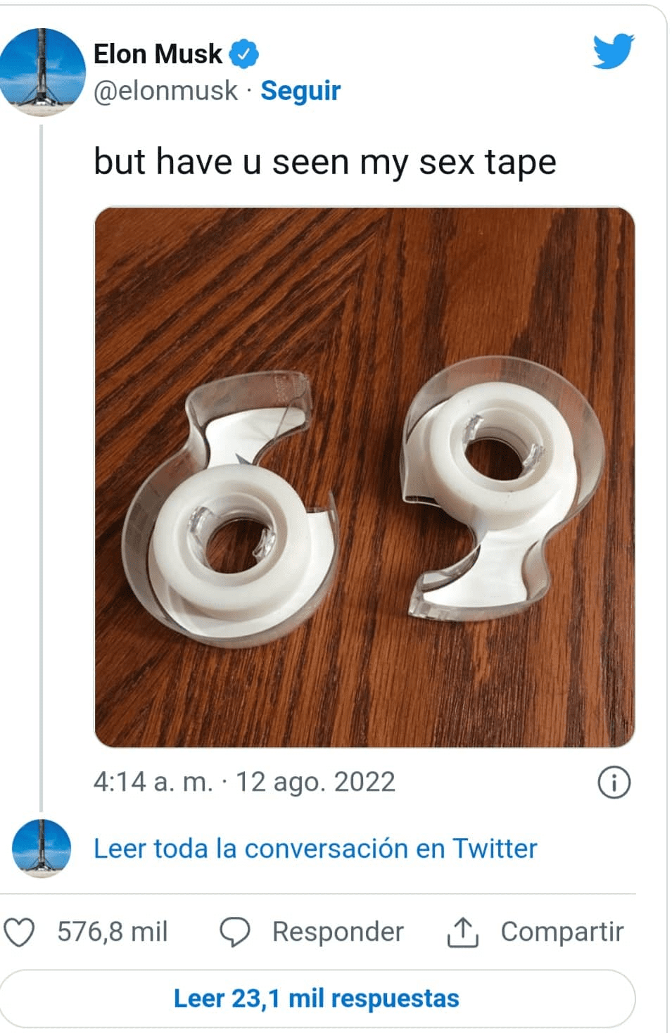 Musk a toujours aimé être un farceur et un fabricant de jeux de mots et tout le monde sur Twitter le sait, alors il a récemment twitté la s3xtape suivante :