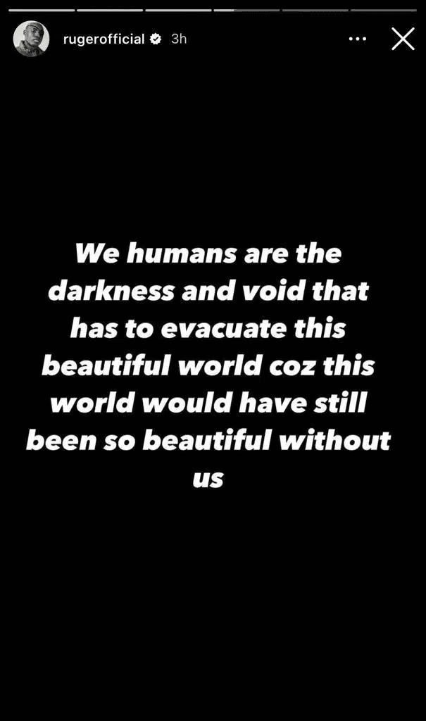 « Eh bien, ils sont vite passés à autre chose. Ce monde et tout ce qui s’y trouve n’ont pas de sens. Nous les hommes sommes l’obscurité et le vide qui doivent disparaître de ce monde merveilleux, parce que même sans notre présence, il serait un merveilleux endroit. Ces pauvres nigérians prennent tout à la légère. Je prie pour que vous ne perdiez jamais un être cher », a-t-il écrit.
