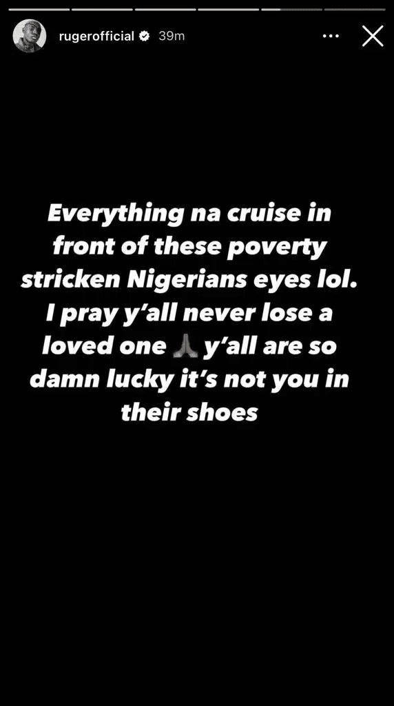 Le chanteur Ruger n’apprécie pas le fait que les Nigérians n’ont pas pleuré longtemps la mort d’Ifeanyi, le fils de Davido.
