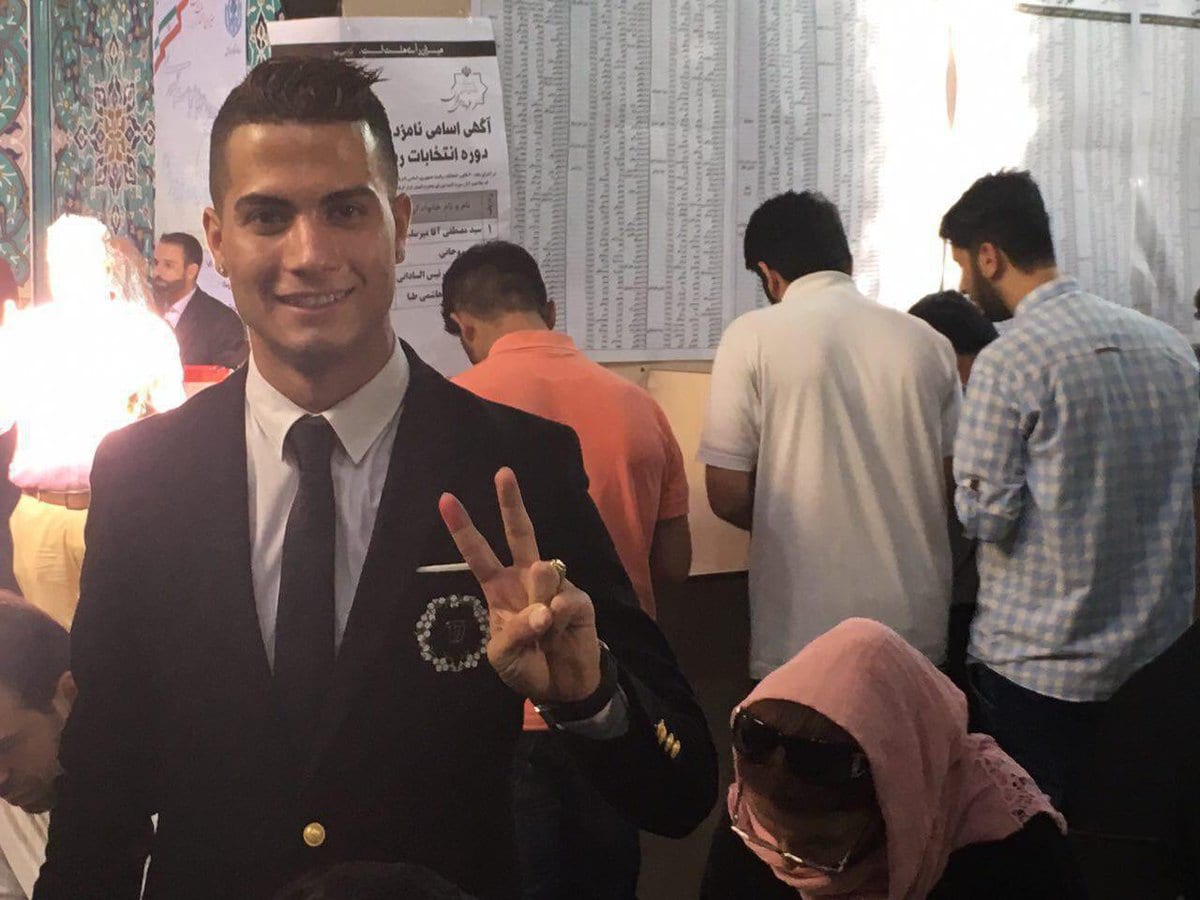 Même si la ressemblance n’est pas très frappante au premier coup d’œil, il existe quand même des traits de ressemblance entre le jeune iranien et le portugais. Ce jeune étudiant est devenu une star locale. Alors que les Iraniens se sont rendus dans les bureaux de vote pour élire leur nouveau président, le sosie de la star portugaise a été largement pris en photo près de certains bureaux de vote.