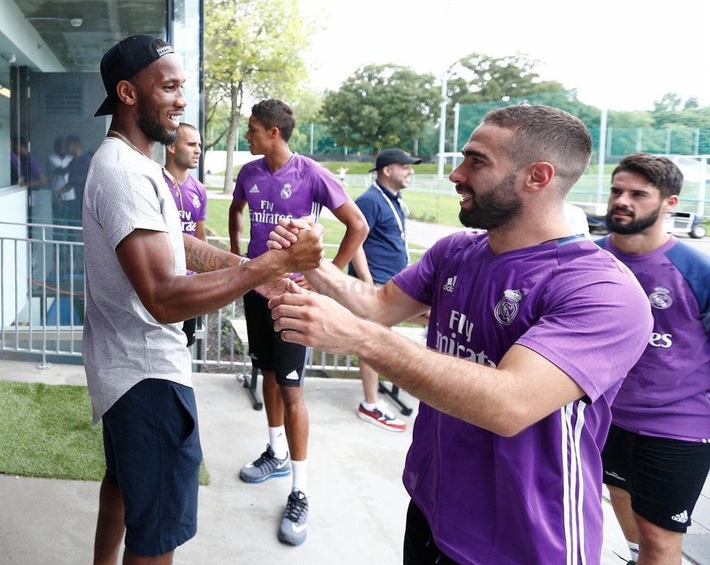 Ayant appris que le Réal Madrid est venu pour sa préparation sur les terrains de l’Impact de Montréal, Didier Drogba n’a pas caché sa joie et est allé à la rencontre de plusieurs joueurs avec lesquels il a discuté des matchs de football lors de diverses compétitions européennes.
