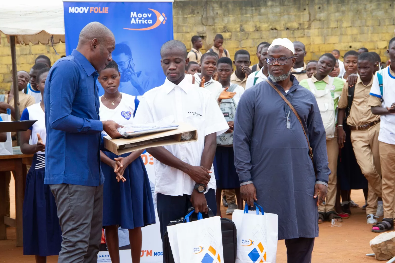 Ce mercredi 4 octobre 2023, Moov Africa Côte d’Ivoire vient réaffirmer son engagement en offrant pour cette nouvelle édition, des ordinateurs aux meilleurs bacheliers scientifiques de la ville de Daloa.