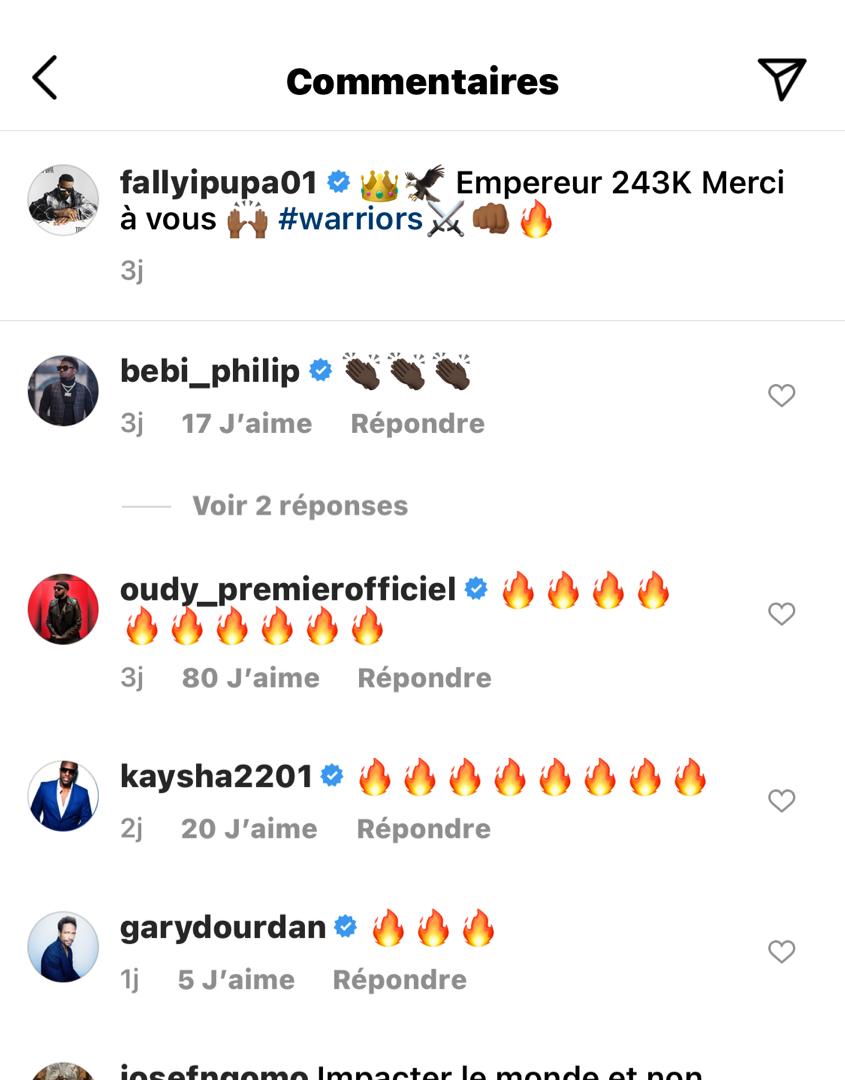Les fans et autres artistes ont laissé des messages des félicitations aux chanteurs. Ils l’encourageaient par ailleurs, à gravir davantage les échelons.