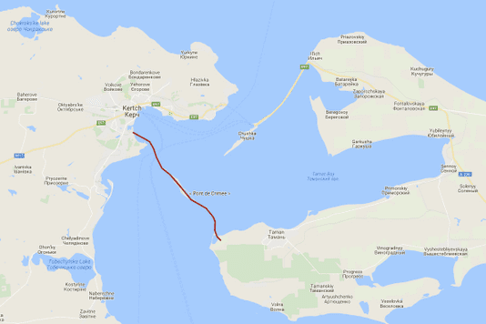 En un temps record, les techniciens russes ont fait sortir le pont de l’eau. Il a fallu un peu plus de trois ans pour achever cette oeuvre architecturale qui répond à des besoins tant pratiques que géopolitiques. La presqu’île, bordée par les mers Noire et d’Azov, n’est reliée à l’Ukraine que par quelques étroits bras de terre.