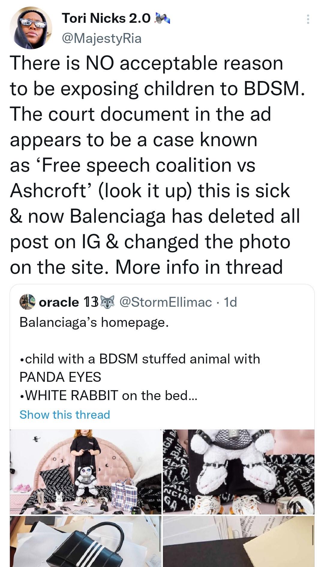 La maison de couture espagnole s’est récemment retrouvée mêlée à une controverse sur deux campagnes publicitaires récentes. La première campagne, la campagne de collecte de cadeaux du créateur, a été critiquée pour avoir utilisé des enfants pour modéliser ses sacs à main en peluche, après que les critiques ont souligné que les ours semblaient porter des accessoires inspirés du BDSM et du bondage.