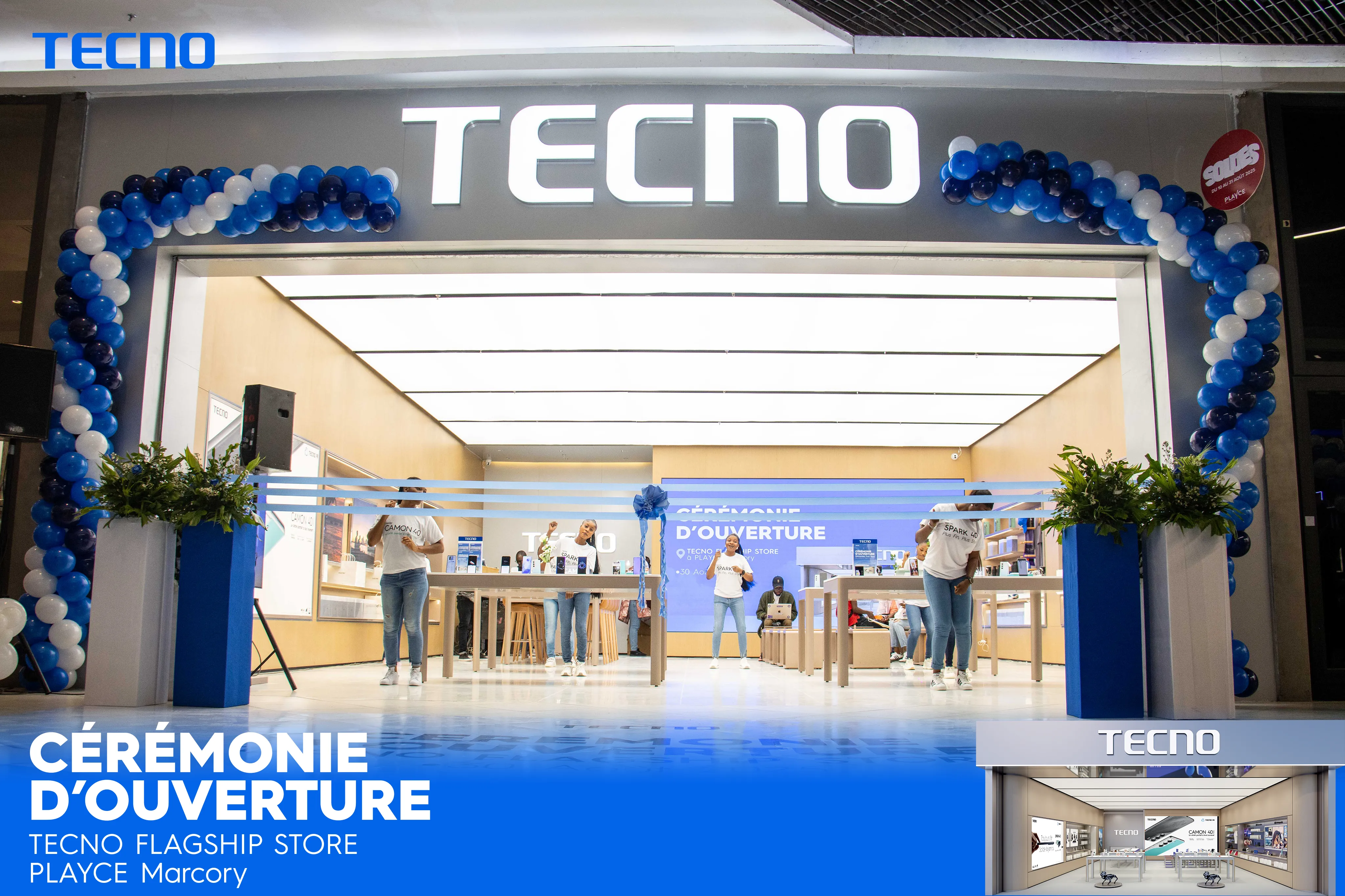 C’est en présence de la superstar Serge Beynaud, du représentant de Playce Marcory, de la Shop Owner Tecno Playce et de plusieurs clients que la réouverture du Tecno Flagship Store de Marcory Playce a eu lieu le samedi 30 août 2025.