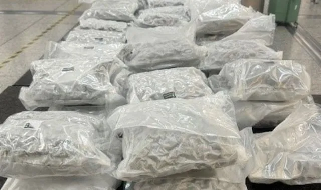 Les autorités de la police des frontières britanniques ont mis la main sur environ 60 kilos de cannabis répartis dans deux valises arrivées au Royaume-Uni le 2 septembre 2023.