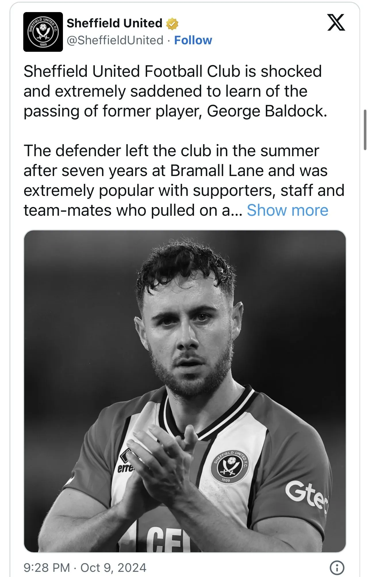 Le monde du football est en deuil après l’annonce du décès soudain de George Baldock, ancien défenseur de Sheffield United, à seulement 31 ans.
