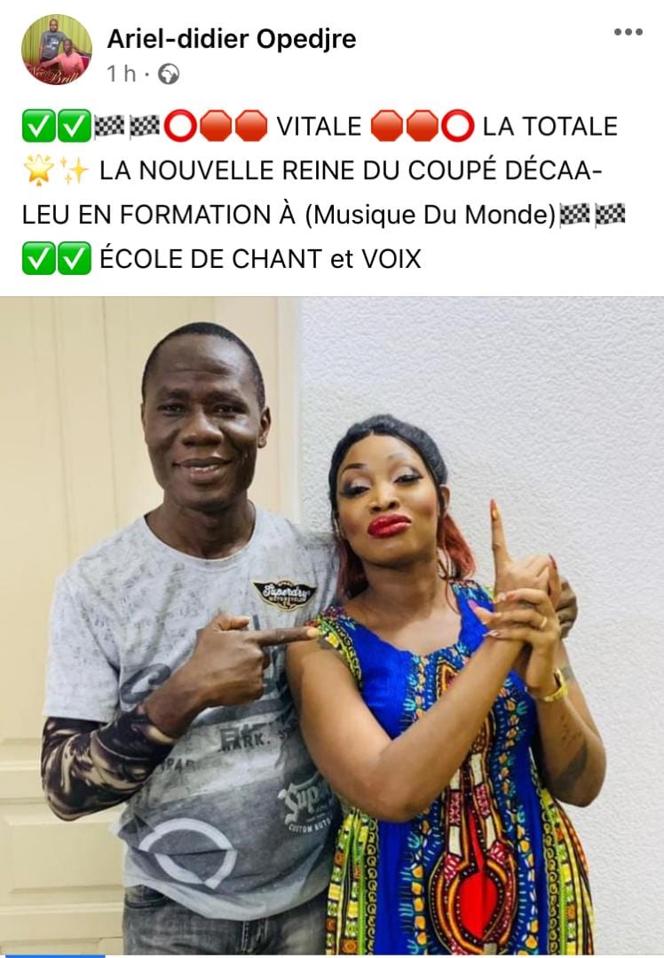 Sur internet, l’on a pu voir un nommé, Arie-Didier Opedjre relayé sur son profil Facebook, une photo de Vitale. Précisant en légende qu’elle serait en formation dans une école de chant et de voix.