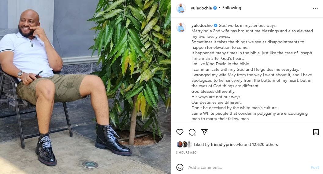 L’acteur nigérian, Yul Edochie, a déclaré qu’épouser deux femmes lui avait apporté des bénédictions et permis d’élever ses deux femmes.